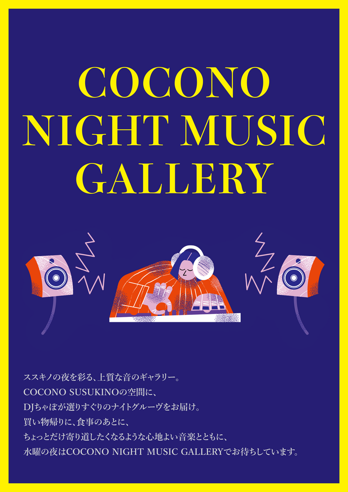 COCONO SUSUKINOの空間に、DJちゃぼが選りすぐりのナイトグルーヴをお届けします。